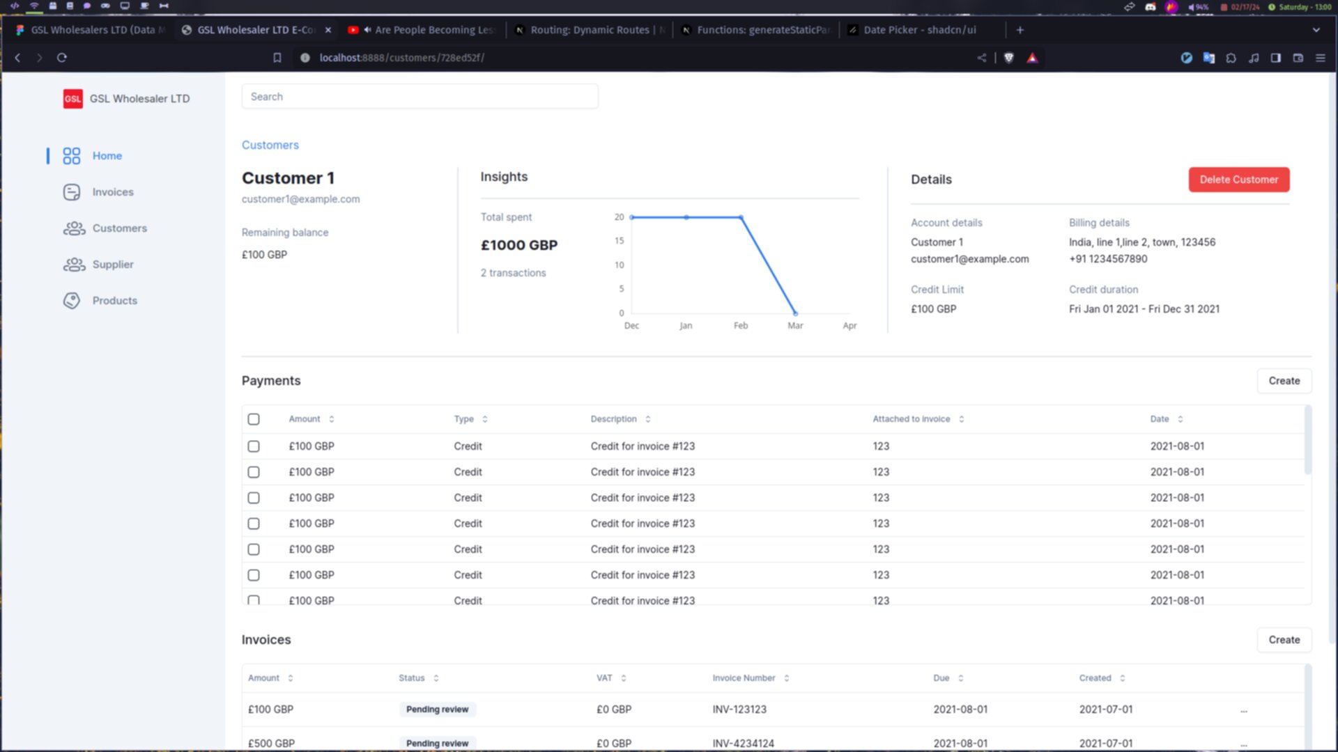 E-Commerce Dashboard for GSL Wholesalers LTD